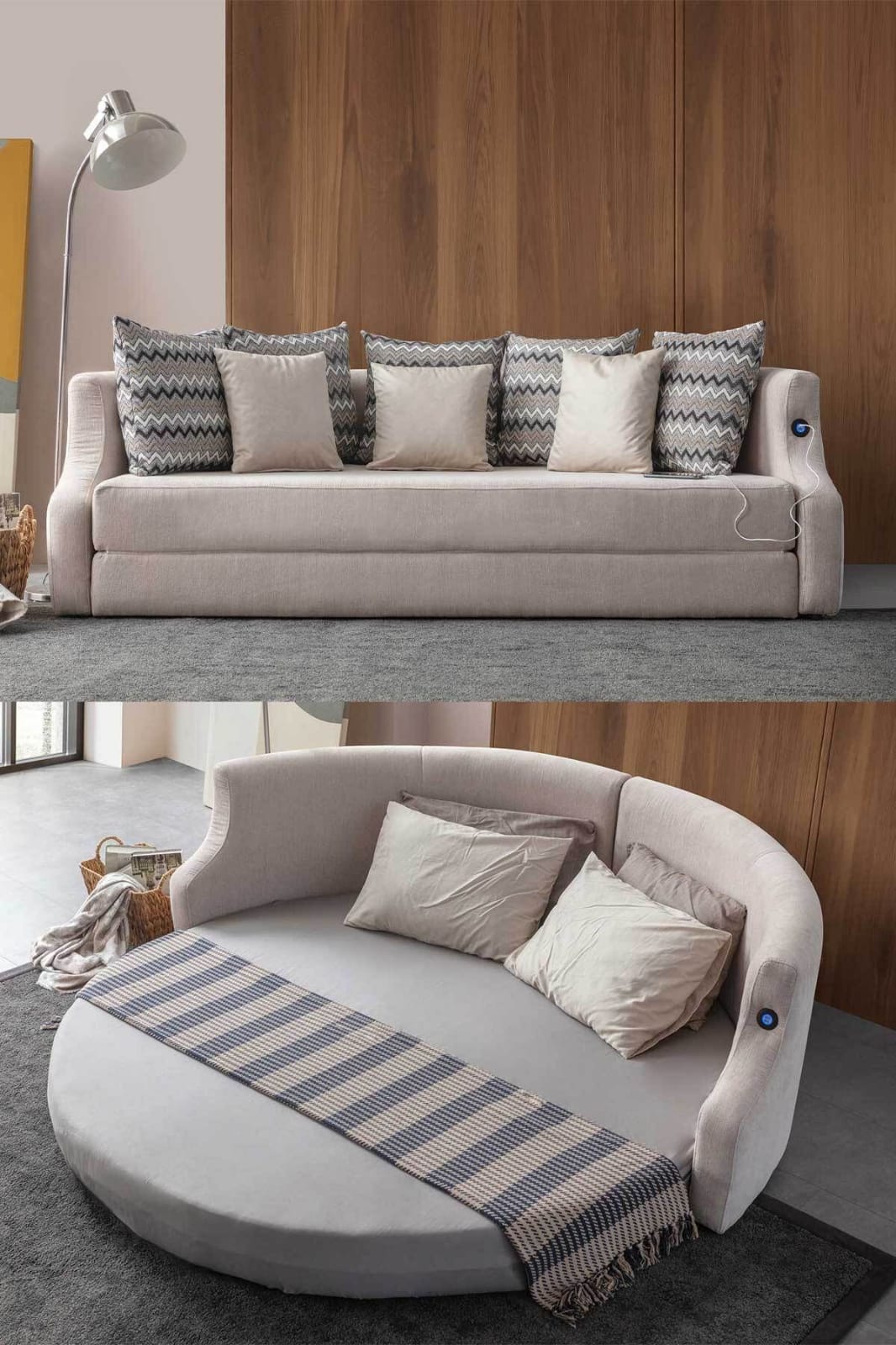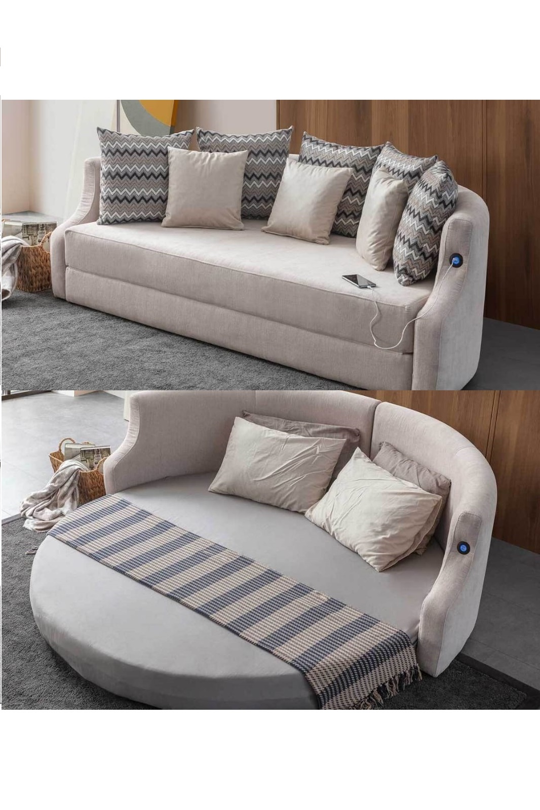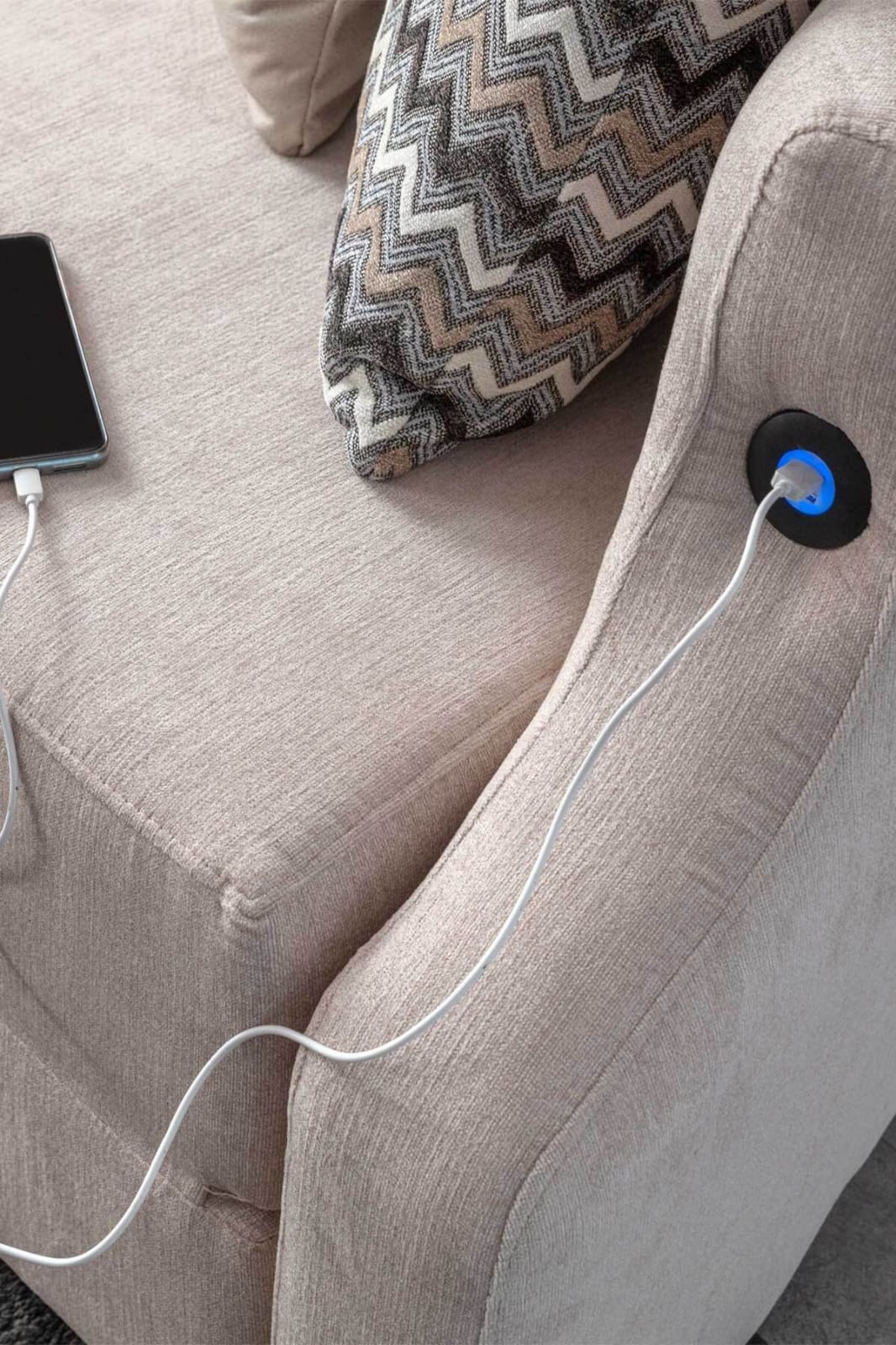 დივანს აქვს USB დასატენი ფუნქცია